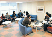 휴게 라운지를 조성하여 외부인과 만남의 장소 및 다목적 공부 공간으로 활용
